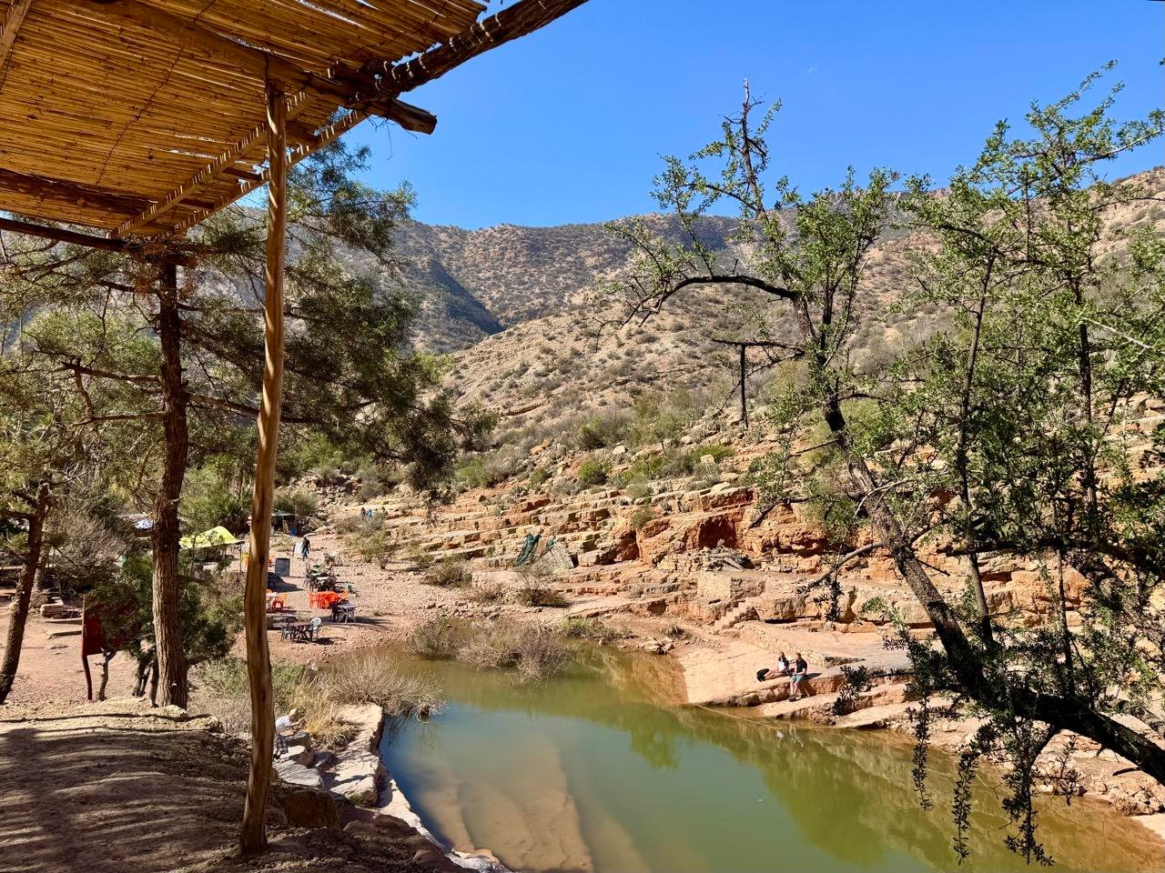 Via Imi Ouaddar rijd ik via een prachtige bergweg naar Paradise Valley. De naam zegt het al, een paradijselijke vallei met palmbomen en kleine (koude) meertjes waarin zelfs in de winter wordt gezwommen!