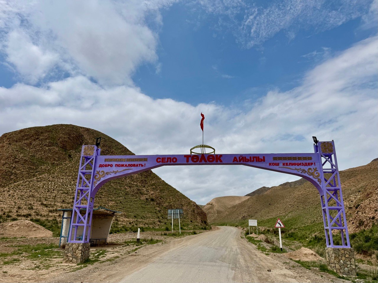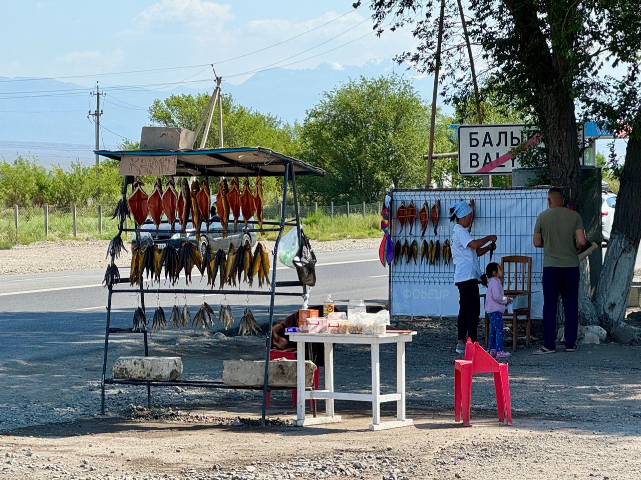 I need to fill up with diesel because I won’t be finding any more gas stations anytime soon. Back to the village, where I buy a 10-liter bottle of diesel… a bit dubious, but it does smell like diesel! According to the gas station attendant, the gravel road to Osh is a good one. Great, we’re off!