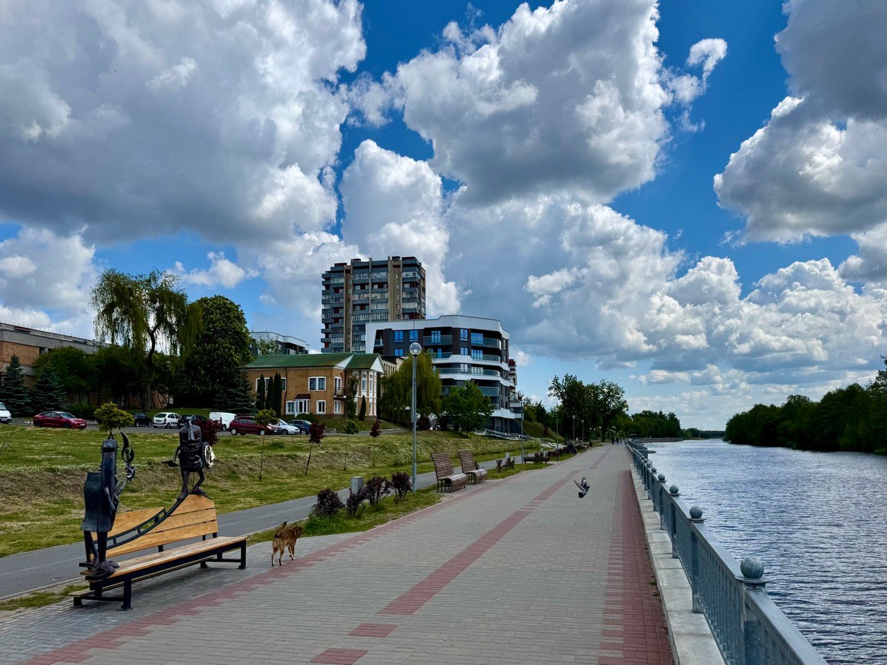 In Brest we walk along the Mukhavets river, I see a German camper and meet Barbara. How nice, she is also traveling alone with her dogs. We have lunch together and walk in the famous Sovetskaya Street. Then drink beer by the river and chat with the locals, I love it! Brest is lively, there is a nice vibe in the city also in the evening, great!