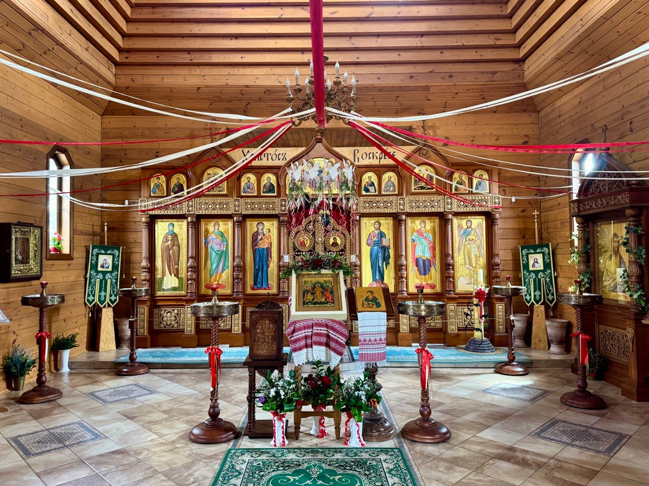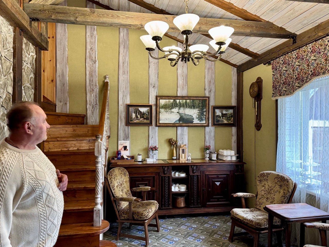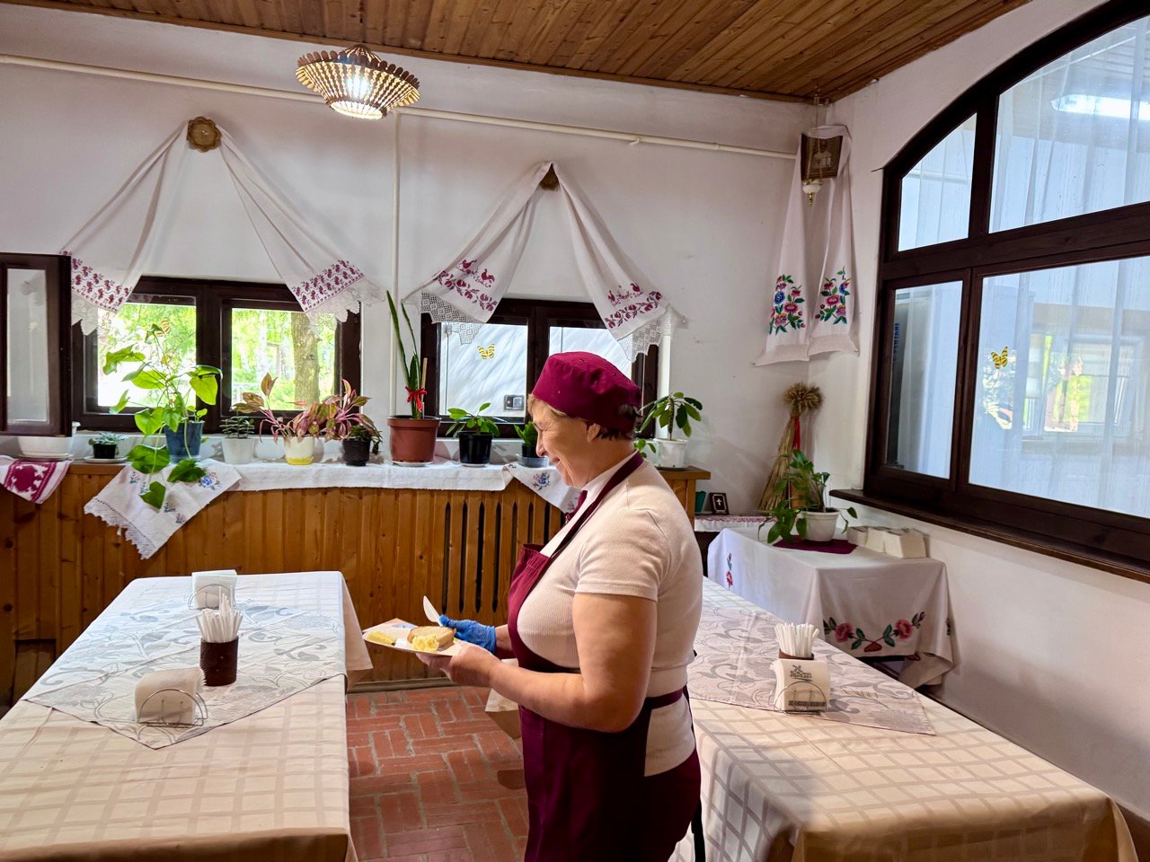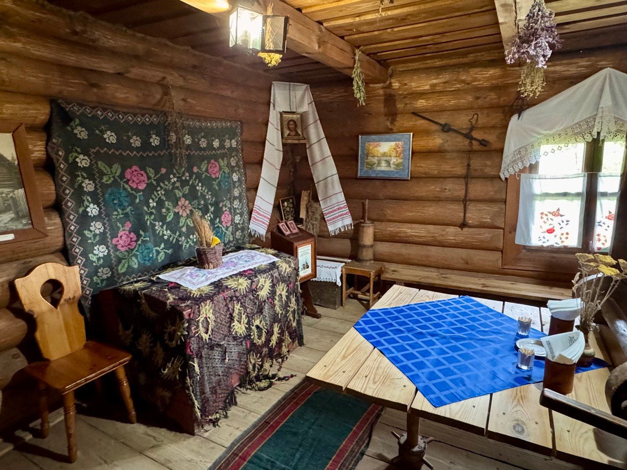 The day starts with sun, so good! The camper place costs BYN 23 (€7) for no water, no electricity, no drainage, but entrance to the museum. Well €7 for no services is a lot, so I’m going to see everything in the museum! First the tasting of homemade cheese and bread. Then the wooden church, a gem! And we walk on to the wooden flour mill with the old house next to it.