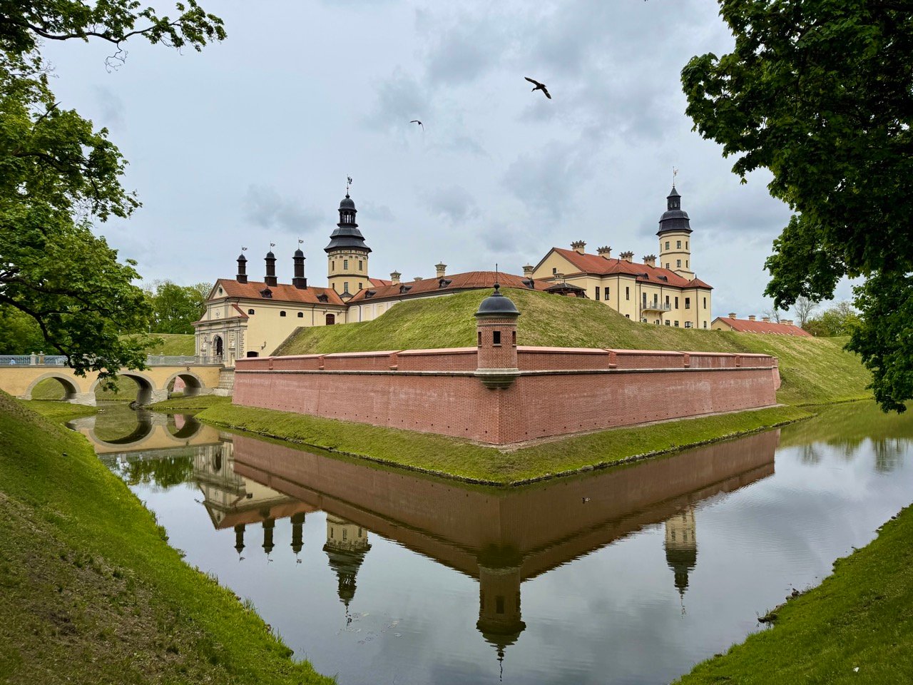 Mir Castle from the 16th century is a must see! Leo and I take a walk around the pond, the castle and the courtyard, wonderful!