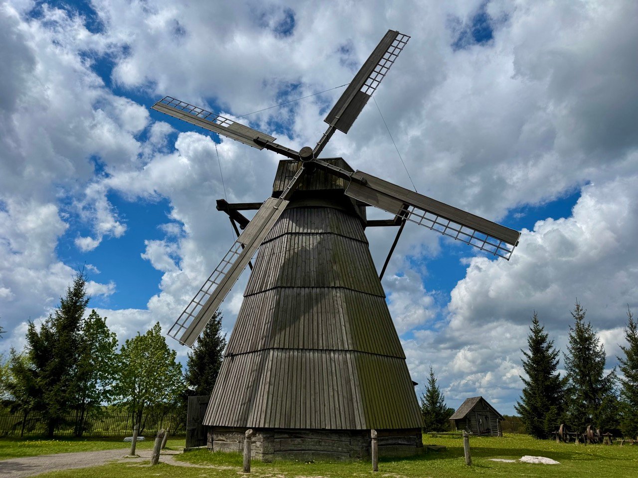 On to the Dudutki museum, there is an official parking for campers. A super quiet place in the countryside. I look out over the grassland, see cows and a wooden flour mill, it looks like the Netherlands?!