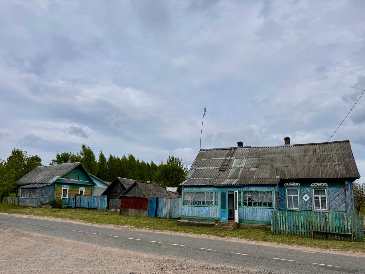 The campsite still exists, it isn’t open but I can park, great! Have a little (Google translate) chat with 2 fishermen and they tell me that I can fill up with water at the water pump in the village. This is really the countryside! Old houses and indeed a water pump. It is now a lot warmer than in Minsk, nice!