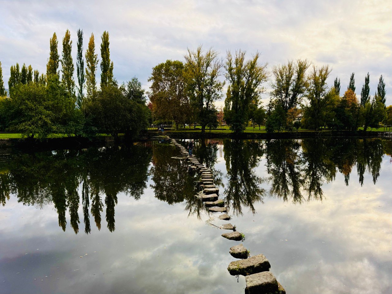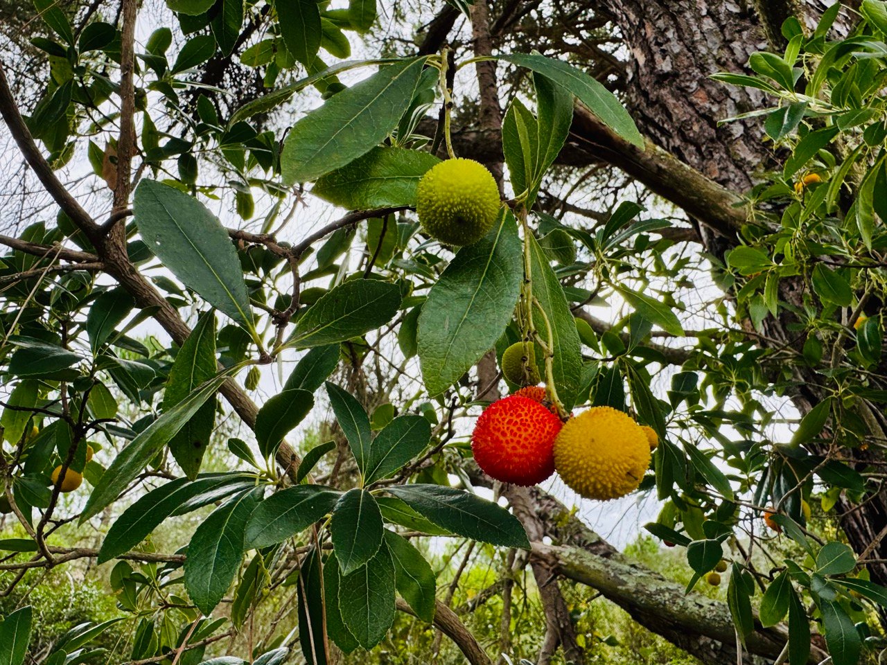 A lovely walk along a wooden path overlooking the river. I eat strawberries from the strawberry tree for the first time!