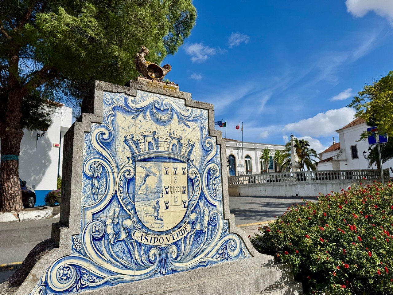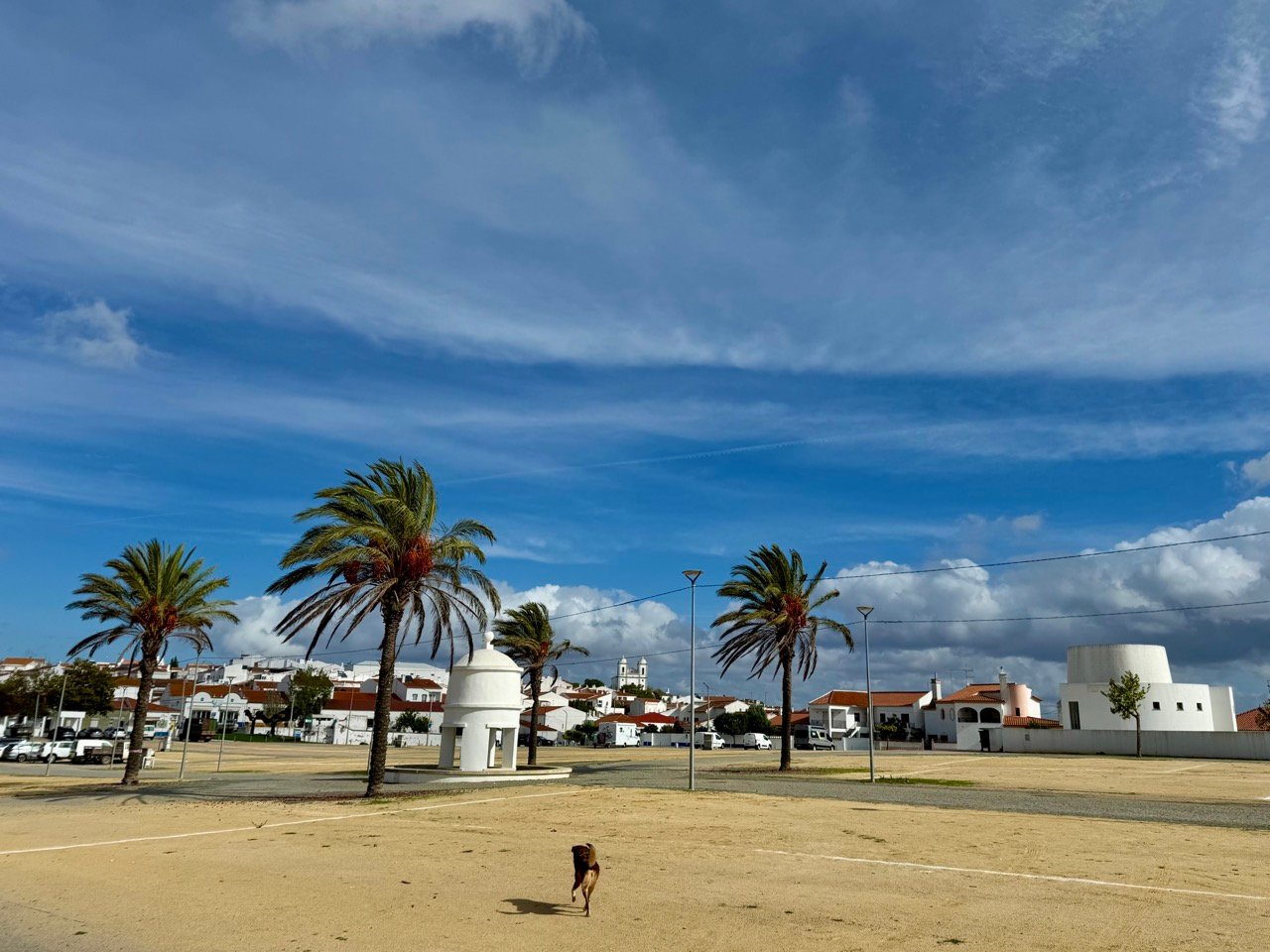 I drive through vast fields of holm oaks to Castro Verde. The route is wonderful again, a joy to drive! In about an hour, I arrive in Castro Verde. There are more campers parked in the village’s large parking lot. I even run into some familiar faces.