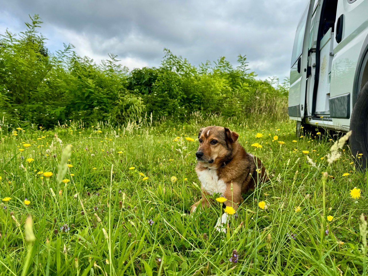 In Mestia, I’m parked in the garden of a house. A huge downpour breaks out, and it rains for the rest of the evening and night. The next day, the sun is shining again! Great, then we continue into the mountains.