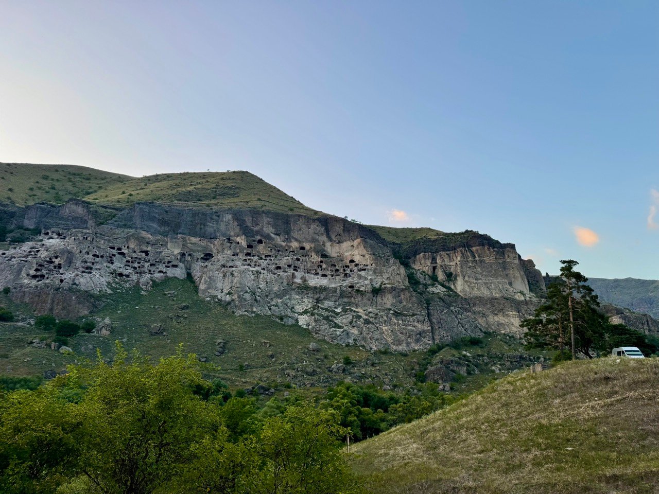 I drive for another hour through this amazing area and then park for the night in Vardzia with a view of the cave monastery. Unfortunately, Leo isn’t allowed in the caves, and waiting in the car at 30-degree celcius isn’t an option. We continue our trip to the South along the river with a view of the gorge.