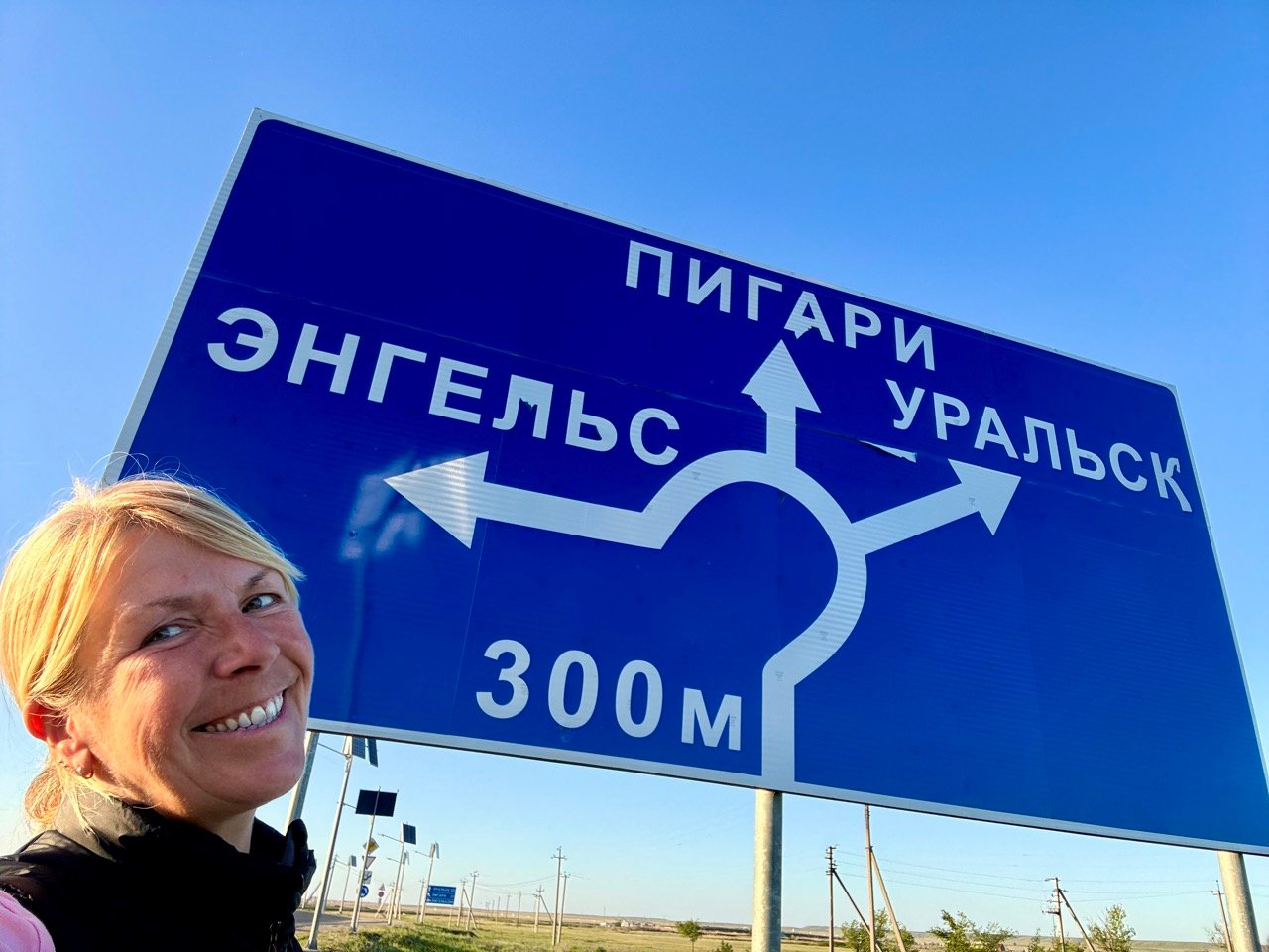 At the Russian border, something strange happens. After much discussion (with hands), I have to wait in line between the trucks, but that could take all day, and I don’t even have a truck?! After waiting for two and a half hours, my new driver friends from Belarus argue with the border guard again (in Russian), and they succeed. I’m allowed through! Thanks, thanks, thanks 🙏 On to Kazakhstan!
