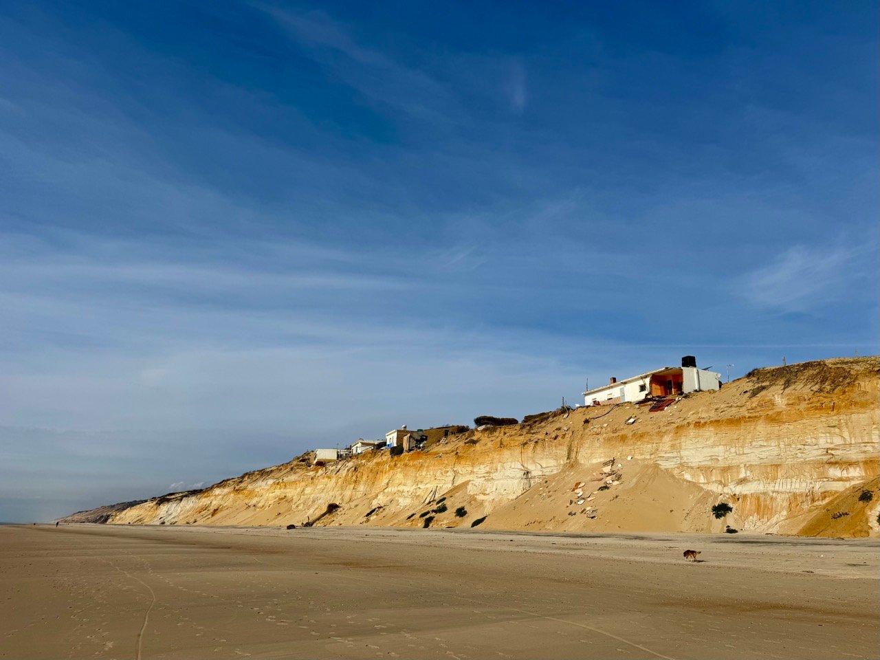 In Matalascañas vind ik een goed plekje naast het park, vlakbij het strand en de zee. We starten de dag met een superfijne wandeling over een leeg strand. Het is heerlijk weer, ik loop nog in m’n korte broek.
