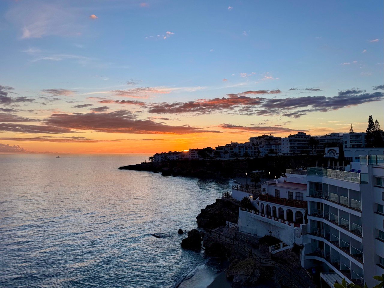 Bij het Balcón de Europa ontmoeten we Ewy en eten we gezamenlijk heerlijk vers gemaakte paella. Ook de zonsondergang is schitterend. We hebben genoten van Nerja!