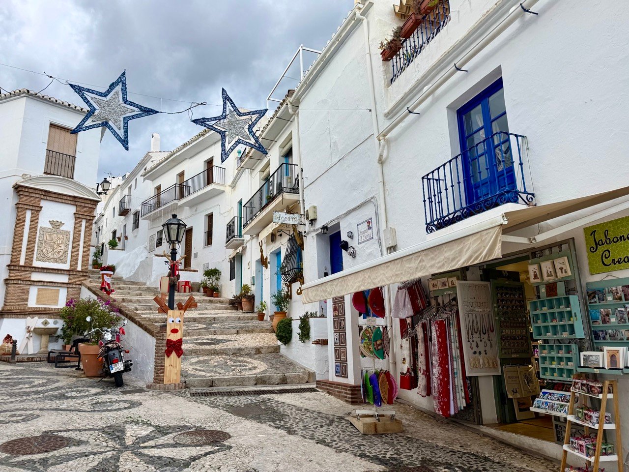 Het dorpje is vlakbij Nerja en een beetje toeristisch. Vanaf de parkeerplaats heb ik fantastisch uitzicht op de kloof. Het Moorse deel van het stadje is het meest fotogeniek en vormt het hart van Frigiliana. We wandelen langs winkeltjes met lokale producten, kunstgaleries en heel veel terrasjes. Een leuk uitstapje!