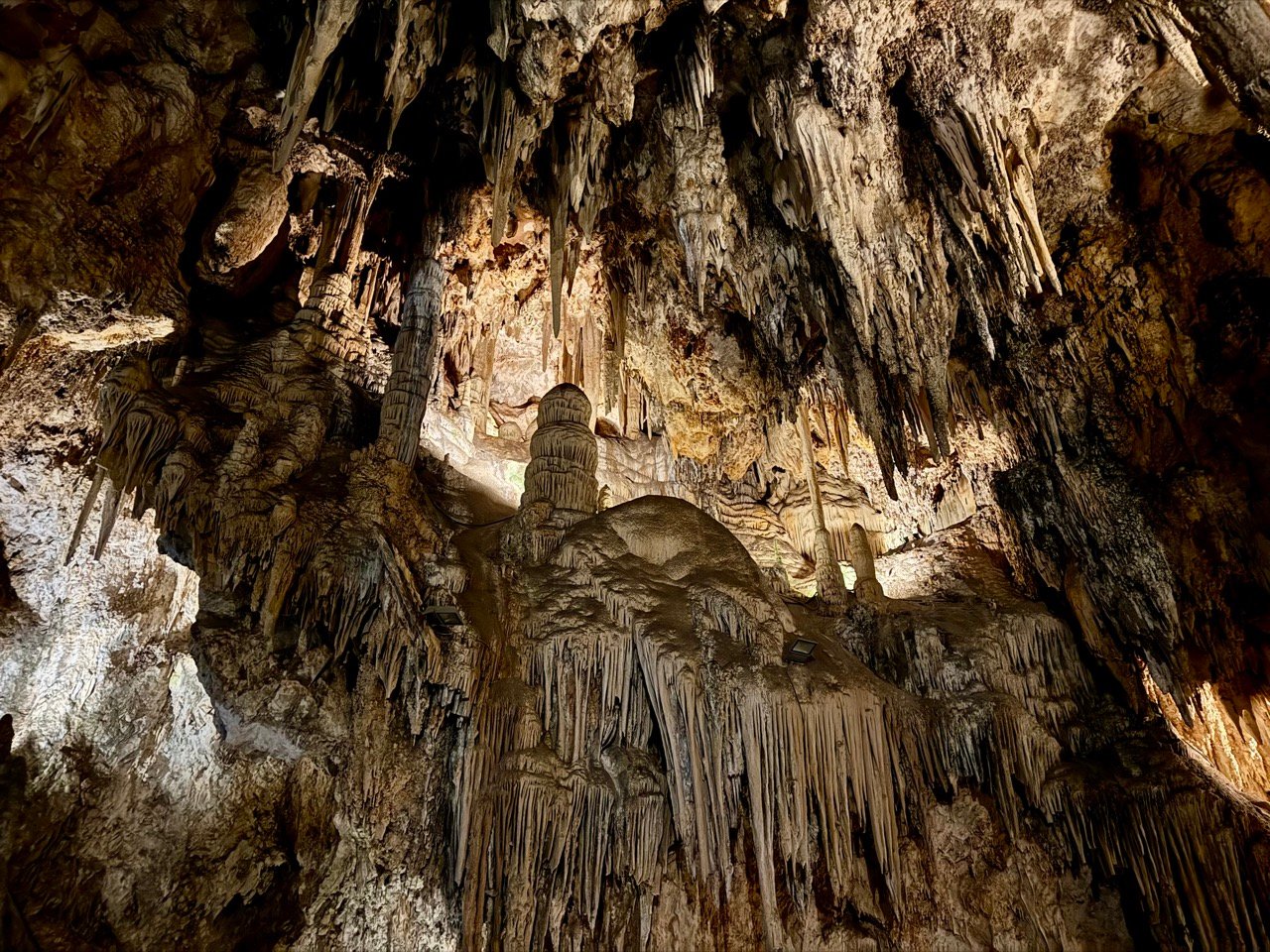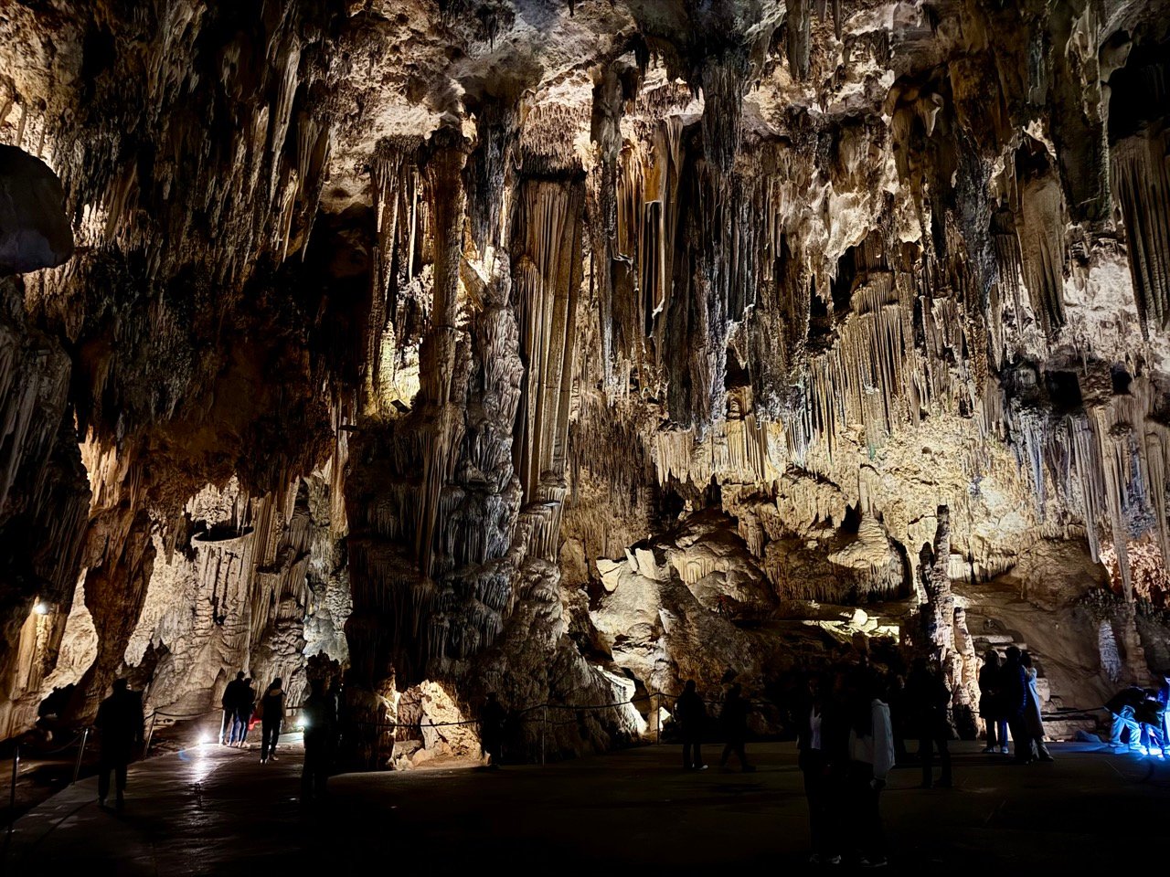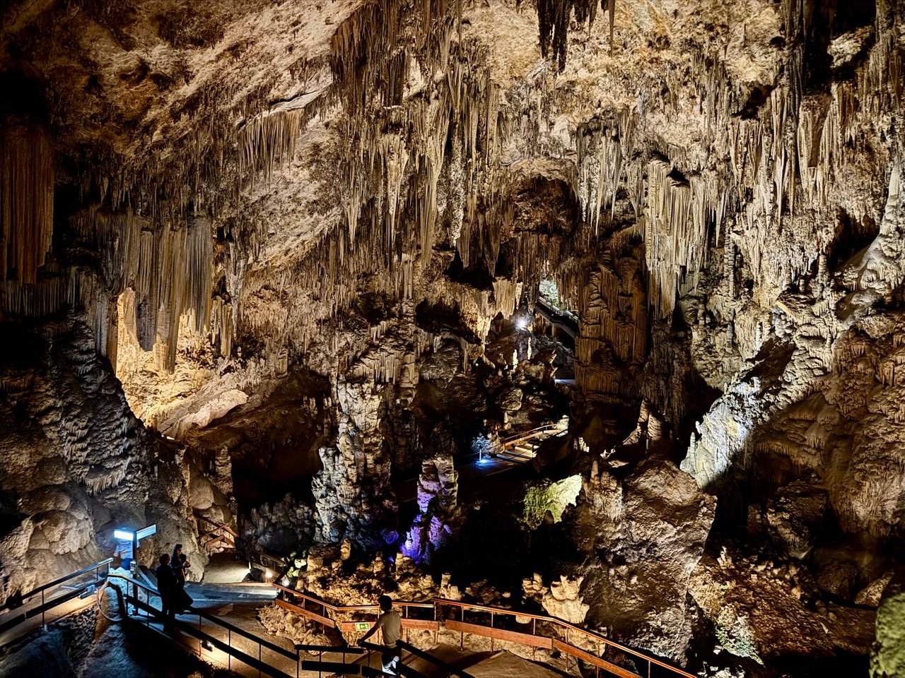 Wow dit is echt gaaf! De grotten zijn mooi verlicht en ik kijk verwonderd rond. Hoe blijven zulke grote pegels aan het plafond hangen? Prachtig! Er is voldoende ruimte en tijd om op je eigen tempo de grotten bekijken. Ter info: een kaartje kost €17,50 en parkeren kost circa €2.