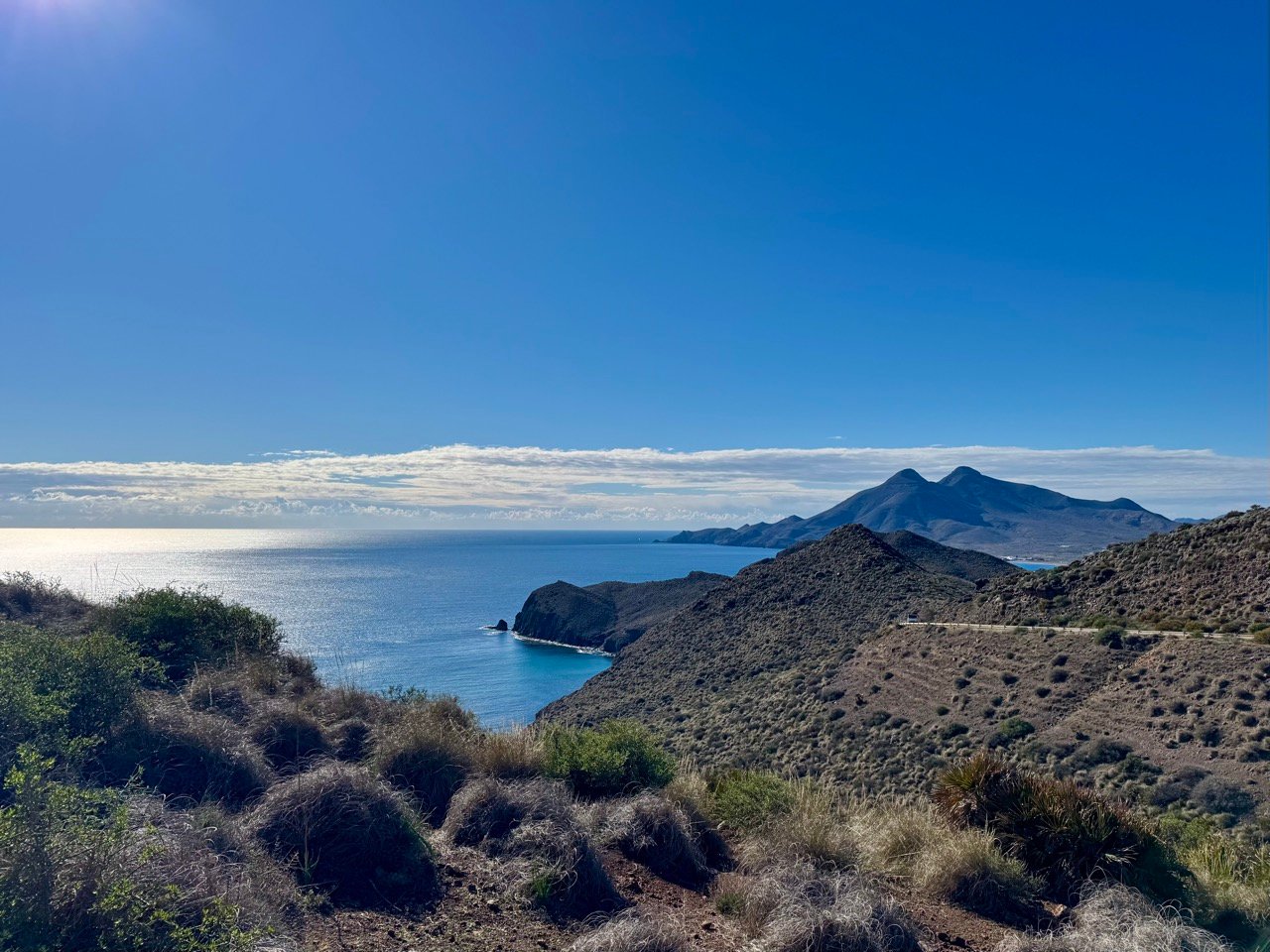 We blijven nog even in natuurpark Gabo de Gata. Onderweg naar El Playazo de Rodalquilar stoppen we bij de Mirador. Fantastisch uitzicht!