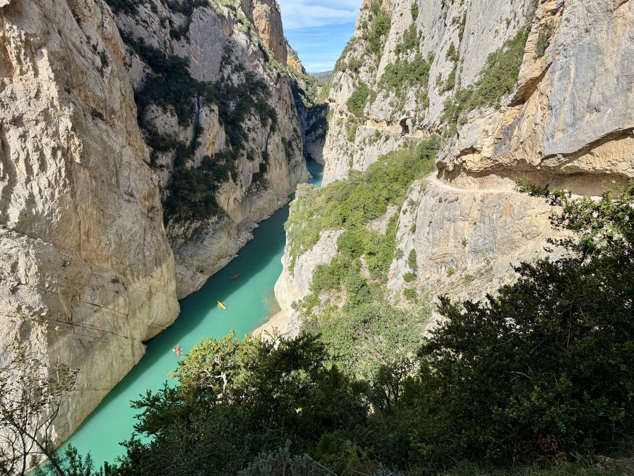 A FAN-TAS-TIC hike! A path has been carved into the canyon wall and you’ll be walking at a high elevation, so you shouldn’t have a fear of heights. The azure water is a gorgeous sight with the red and yellow kayaks floating in the water. You hike back and forth, so you can make the hike as long as you like.