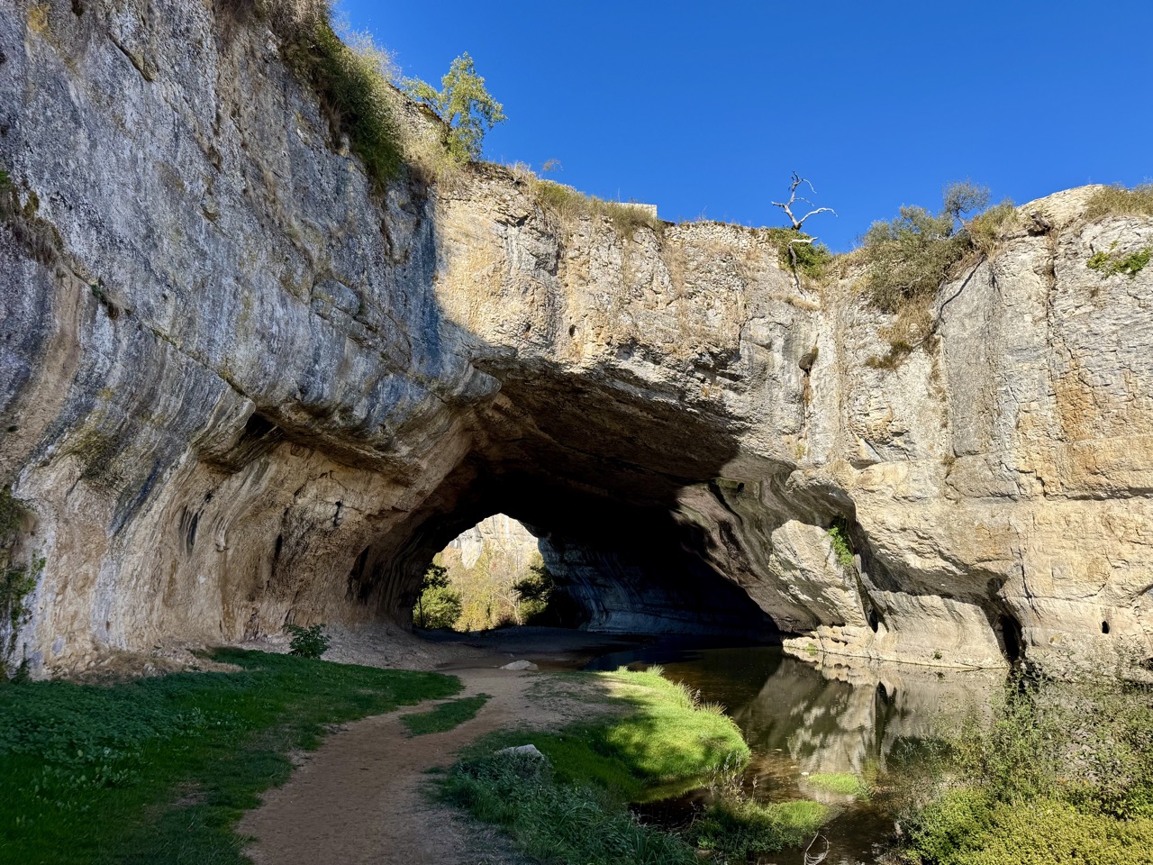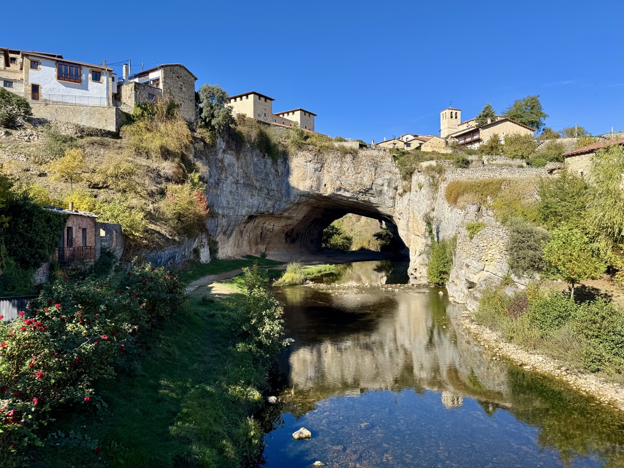Next stop a campervan site on the Camino in Santelices! We’re on our way to the Picos de Europa, but we’re going to hike here first. There’s a 15 km loop trail to the village of Puente Dey. Here, houses and a small church are built on top of a natural cave bridge. It’s a lovely village, recommended!