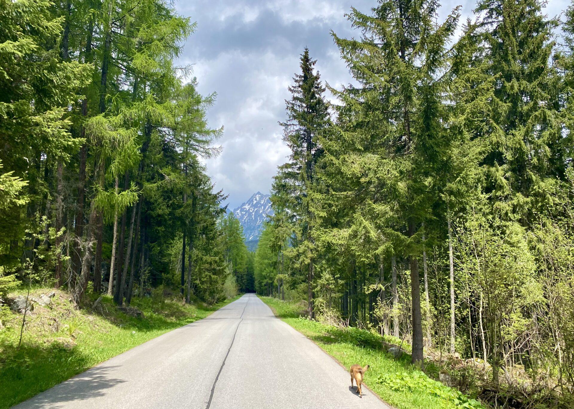 Not all hiking trails are open in High Tatras at the end of May, but I found a nice route! From the lake Štrbské Pleso we walk to the higher situated lake Popradske Pleso. You can walk on the asphalt or take the route through the forest. Once at the top I enjoy the beautiful view over the lake.