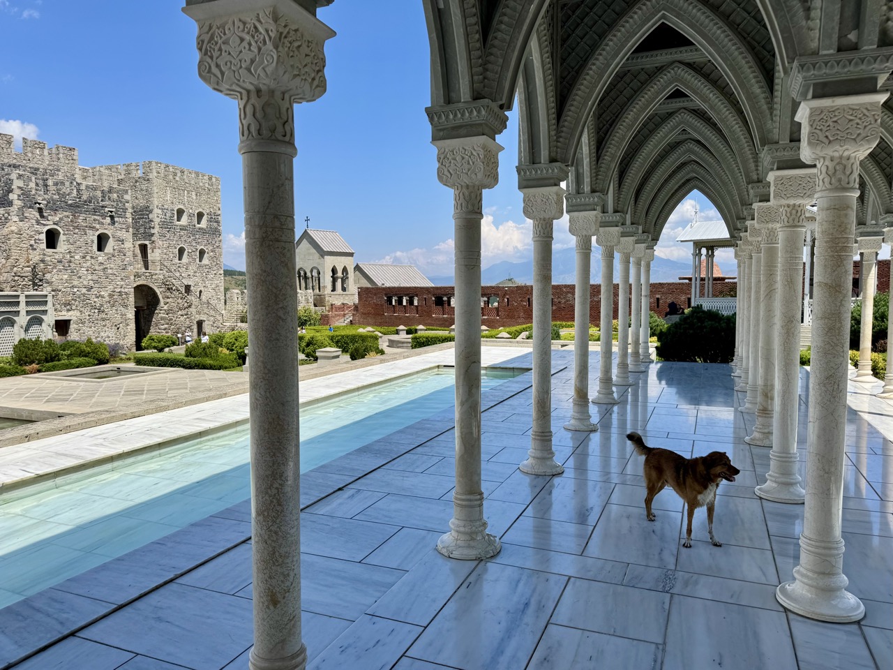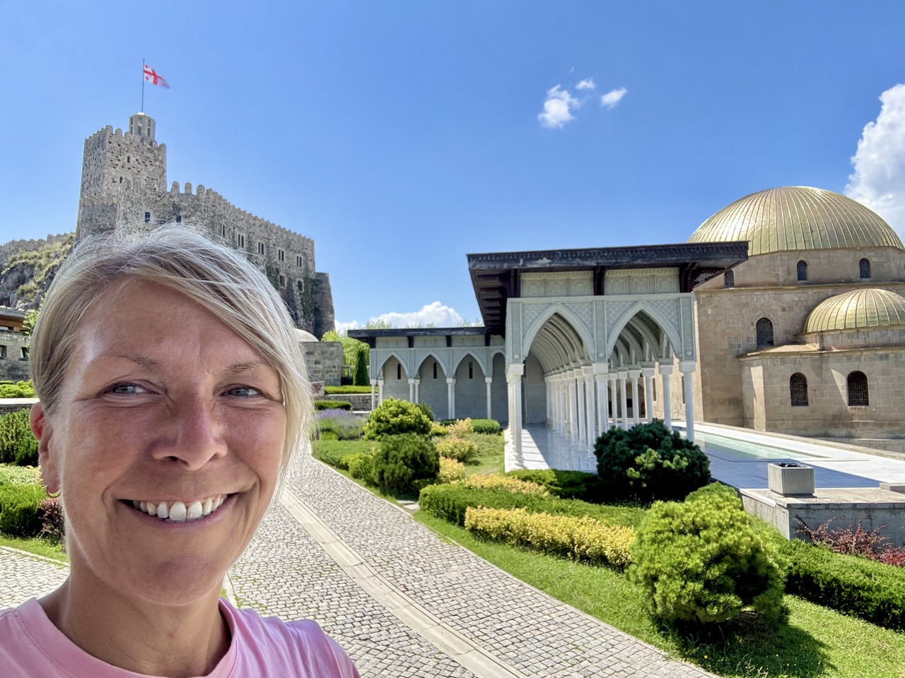 Het Rabati Castle Complex in Akhaltsikhe is een groot middeleeuws kasteel en een mix van allerlei andere gebouwen. We wandelen op de kasteelmuren, langs vijvers en door mooie tuinen. Leo mag mee en hij gaat even zwemmen in de kasteel vijver.