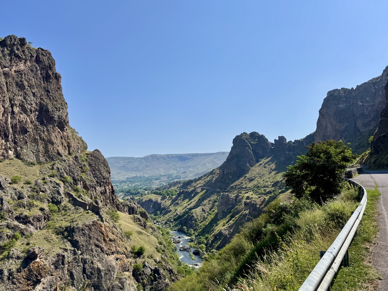 Helaas mag Leo niet in de grotten en in de auto wachten met 30 graden is geen optie. We rijden verder langs de rivier met uitzicht op de kloof. Onze fantastische reis in Georgië komt tot een einde en we gaan door naar Armenië!